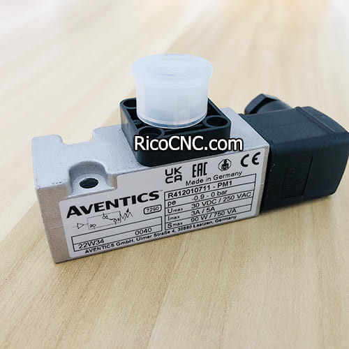 This is R412010711 Aventics pneumatic pressure switch, Series PM1(PM1-M3-G014-V09-000-DINA-CON). It can be used on Homag woodworking machine. Homag part number is 4011040268 or 4-011-04-0268.